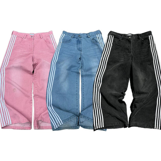Y2K Riotline Wide-Leg Street Demolition Jeans: Striped Harajuku Baggy Fit For Unisex Retro Rebels