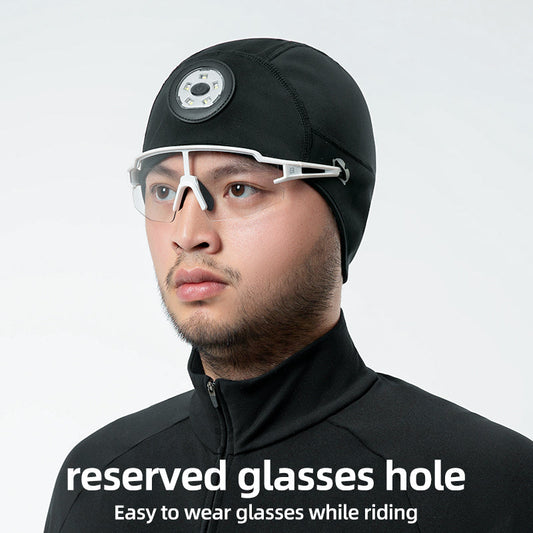 ROCKBROS Winter Bike Skull Cap Thermal Cycling Helmet Liner Headwear with Light