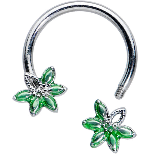 16G 3/8 Green Gem Texture Loopy Pot Leaf Horseshoe Curved Barbell