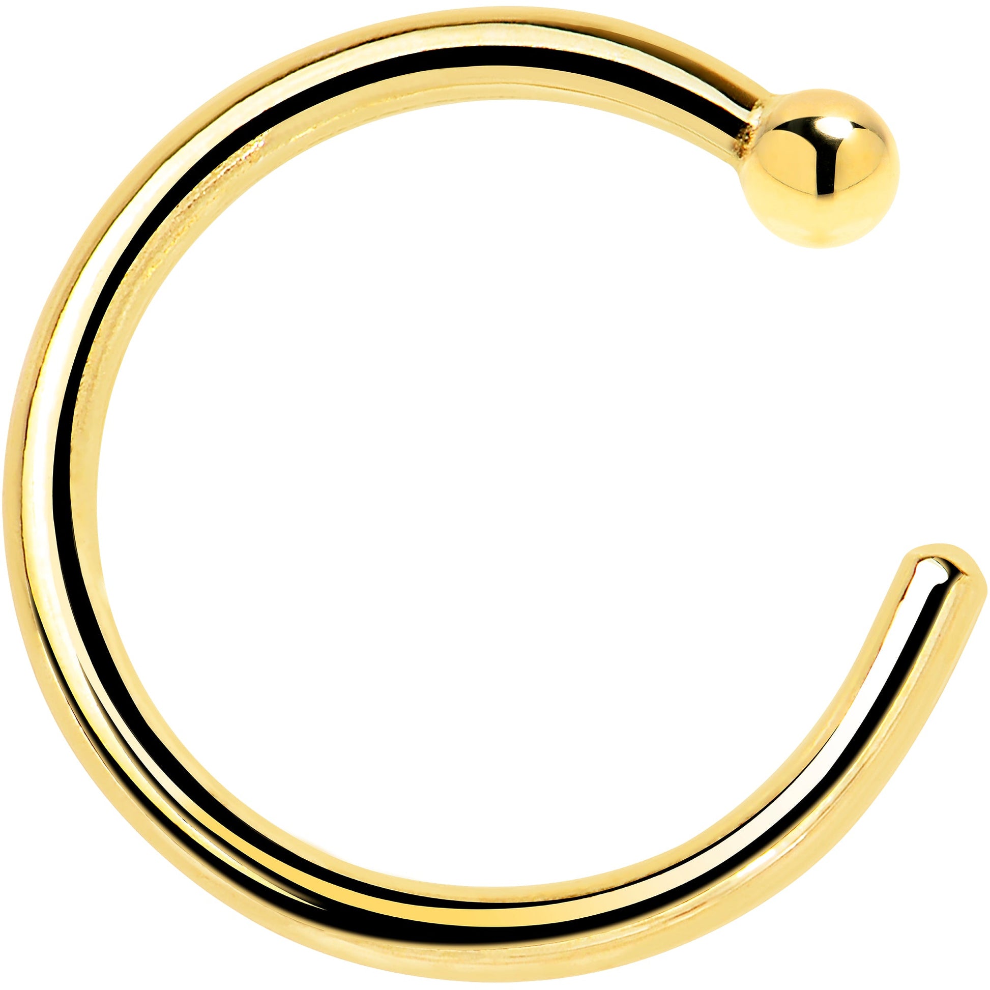 18 gauge nose hoop constructed of solid 14k gold. Simply insert the opening of the hoop through the nostril. Twist and turn through piercing until the ball on the end is resting against the inner part of the nostril. Solid gold nose hoop body jewelry in 14k gold.