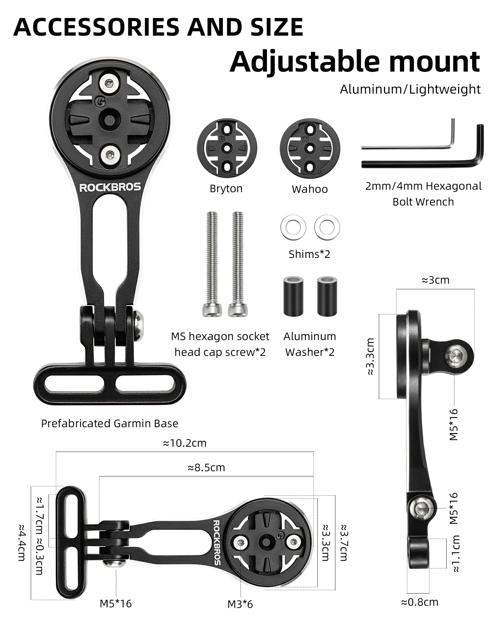 - Equipped with Different Bases:ROCKBROS bike computer mount compatible with Garmin, Bryton . The package contains different edges for different bike computer.Notice:Wahoo cannot be used together with Go Pro