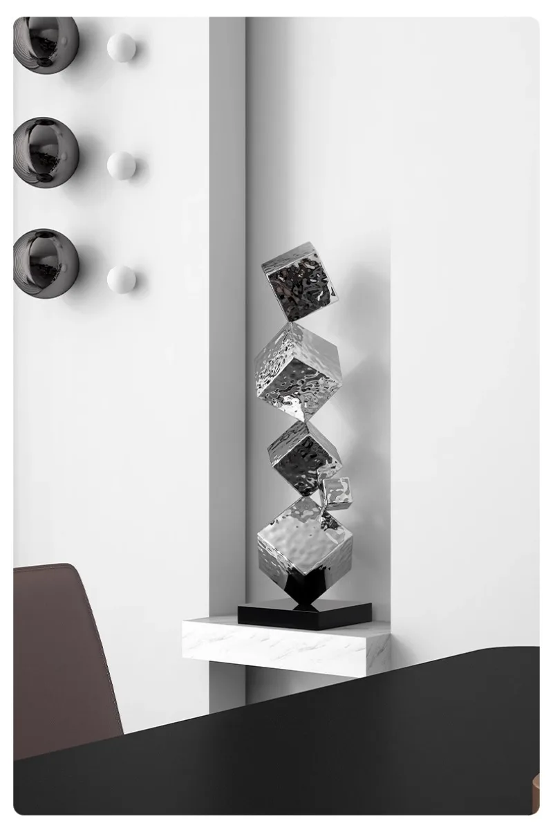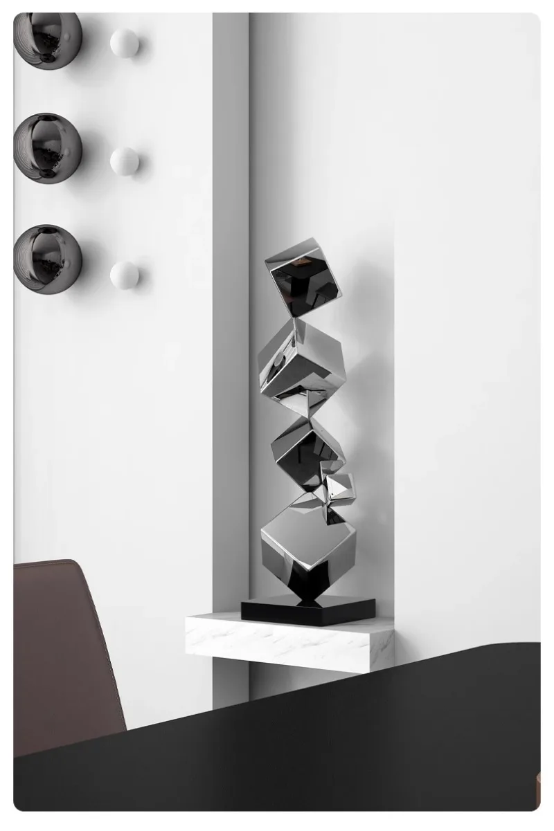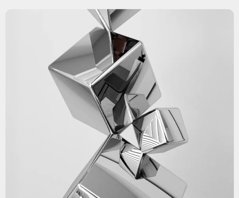 Stainless Steel Geometric Modeling Statues Modern Simple Luxury Living Room Entrance Hall Lobby Creative Sculptures Home Decor