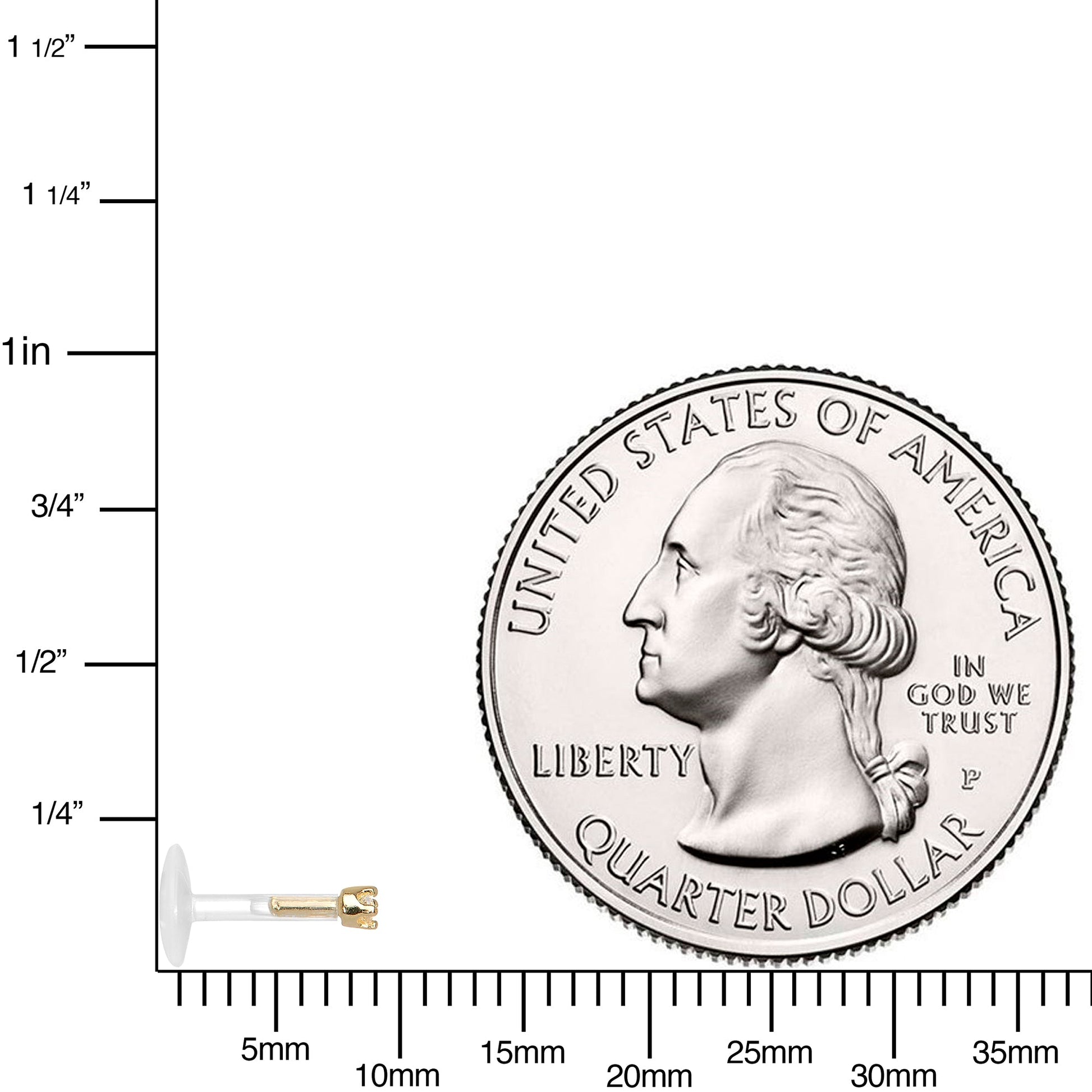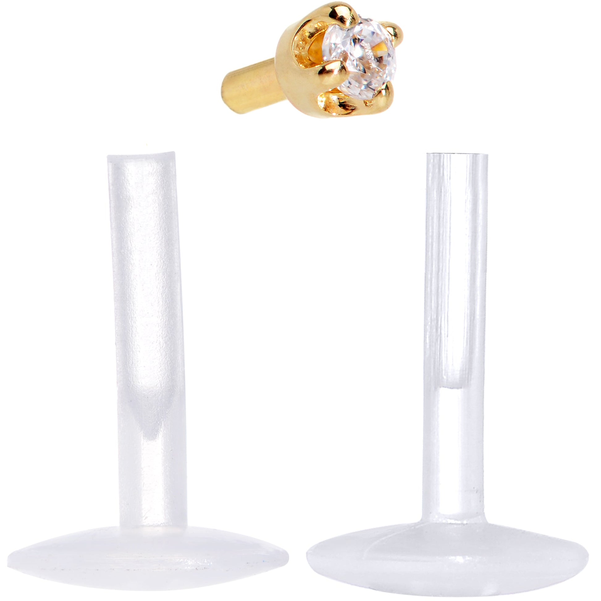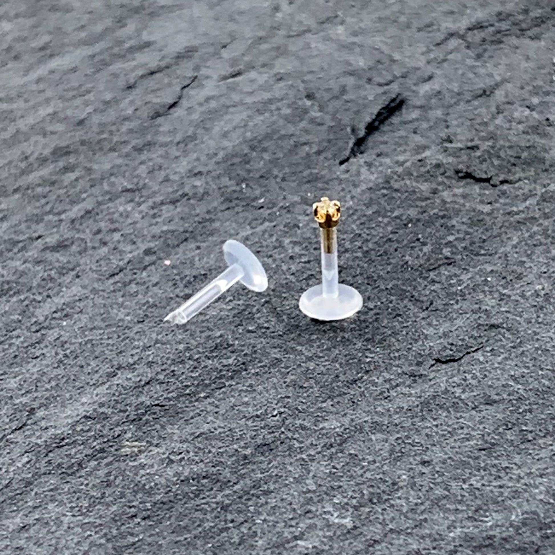 16 Gauge (1.2mm), 1/4" (6mm), Solid 14k Gold, 1.5mm Cubic Zirconia, Flexible Bioplast Shaft, Prong-Setting, Handmade in the USA