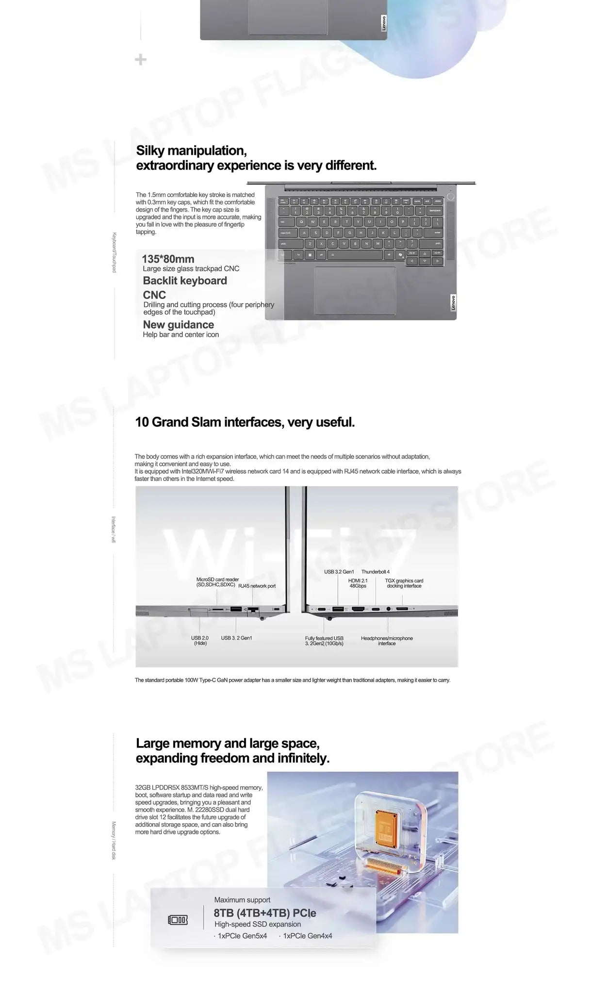 Data interface: 1 x Thunderbolt 4, 1 x full-featured USB 3.2 Gen2 (10Gb/s); 2 x USB3.2 Gen1; 1 x USB2.0 (hidden); 1 x HDMI 2.1 TMDS; 1 x RJ45; 1 x Micro SD card reader (SD/SDHC/SDXC); 1 x TGX graphics docking station