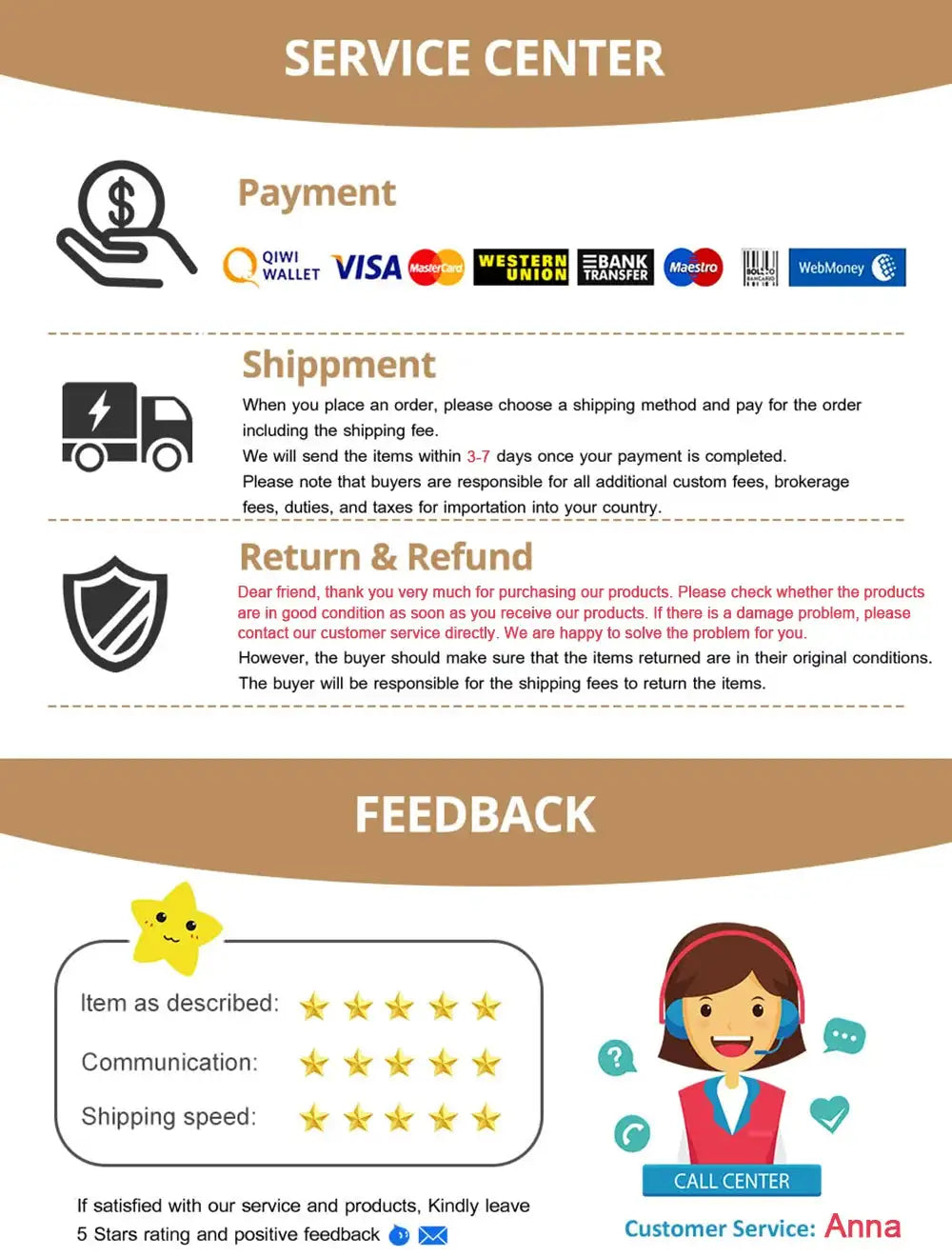 Dear friends, thank you for choosing our store! To make your shopping trip more satisfying, please read the shopping guide carefully.