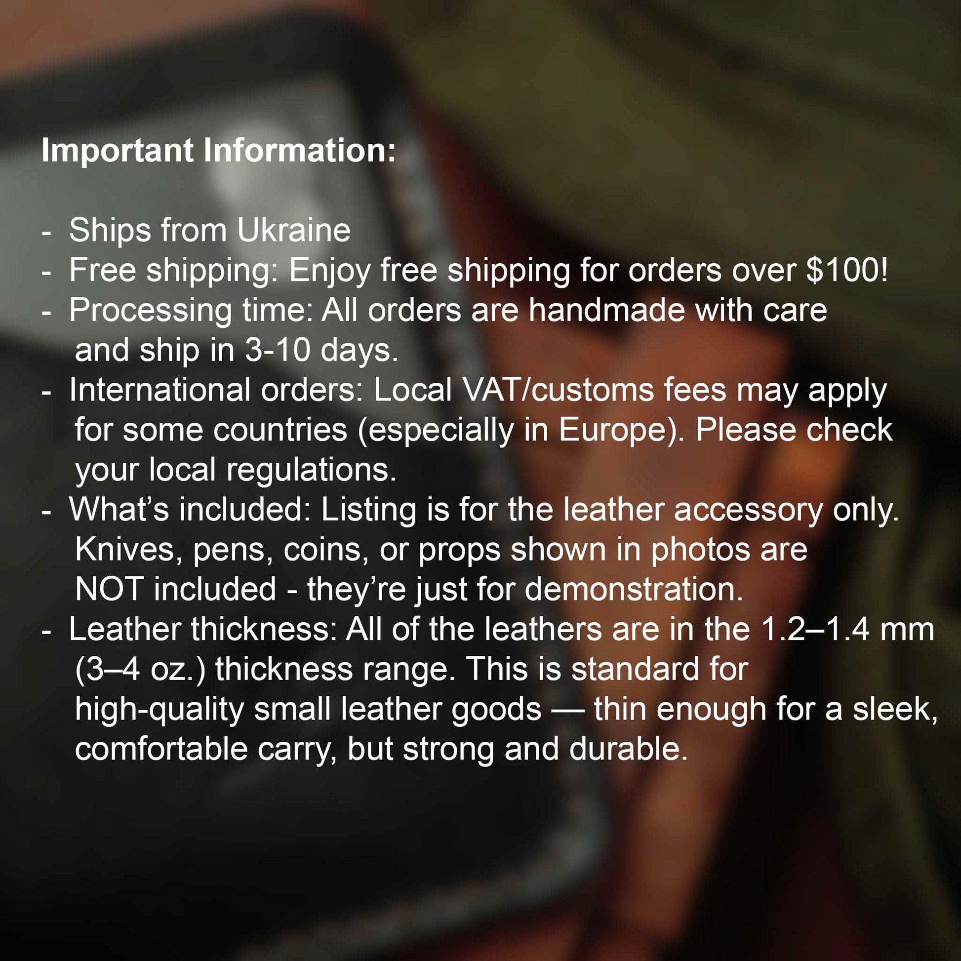 - Handmade craftsmanship using high-quality leather for a premium look and long-lasting durability;