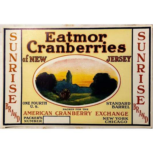 Rare 1920s Eatmor Cranberries Label Showcases New Jersey Sunset