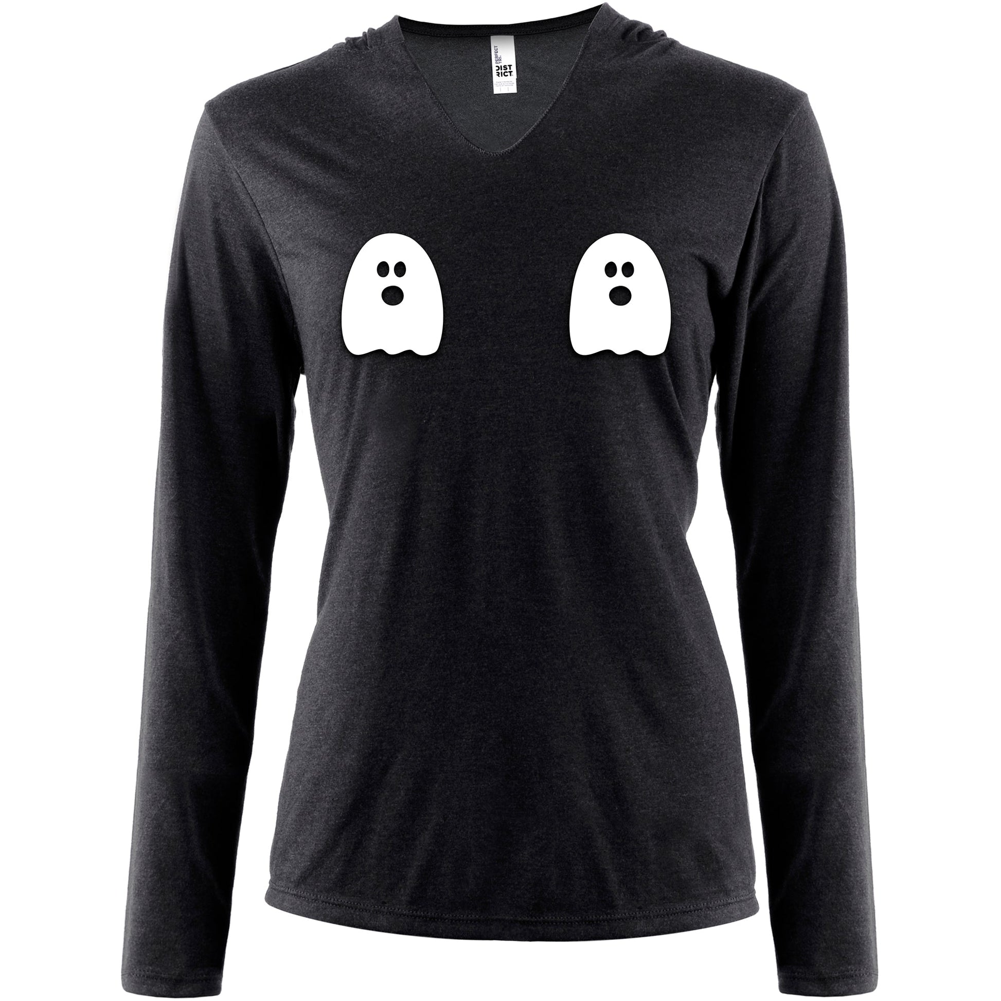 Halloween Glow in the Dark Ghost Boobies Tee Tapered Long Sleeve Hoodie