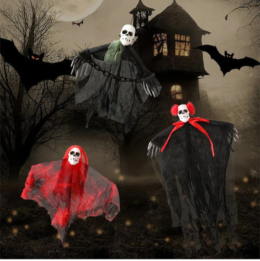 Halloween Gauze Skull Decor - Horror Grim Reaper, Headless Ghost & Red-Haired Ghost Ornaments for Haunted House Decoration