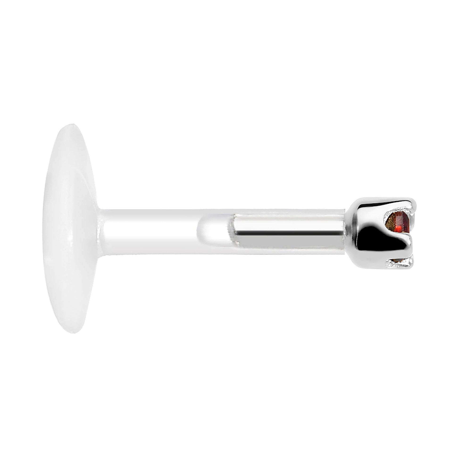 16 gauge birthstone cartilage jewelry with a 6mm barbell. This helix stud earring features a dazzling 1.5mm CZ in a prong setting with a comfortable Bioplast shaft. Quality solid gold body piercing jewelry.