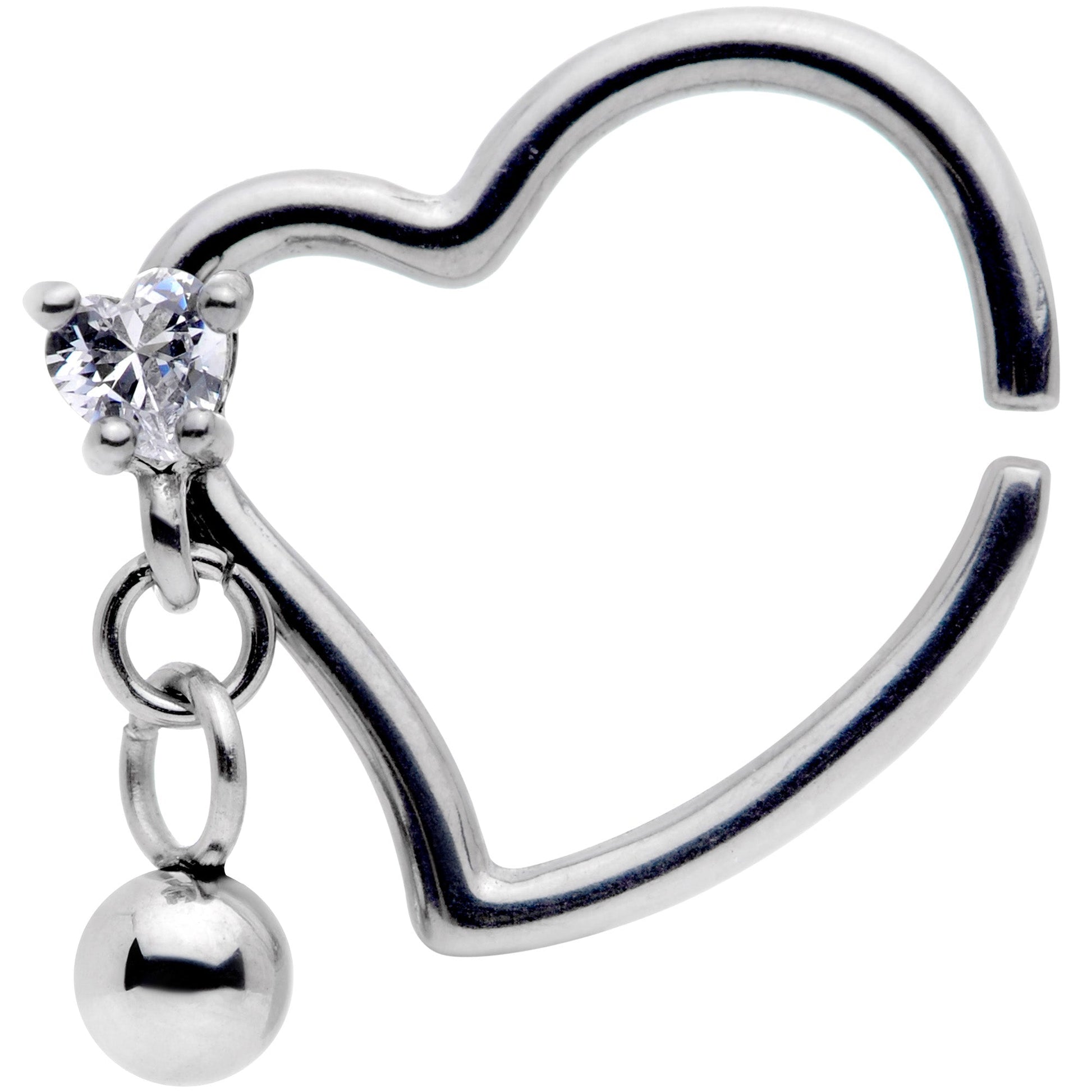 16G 3/8 Clear CZ Gem Funky Heart Right Dangle Closure Ring