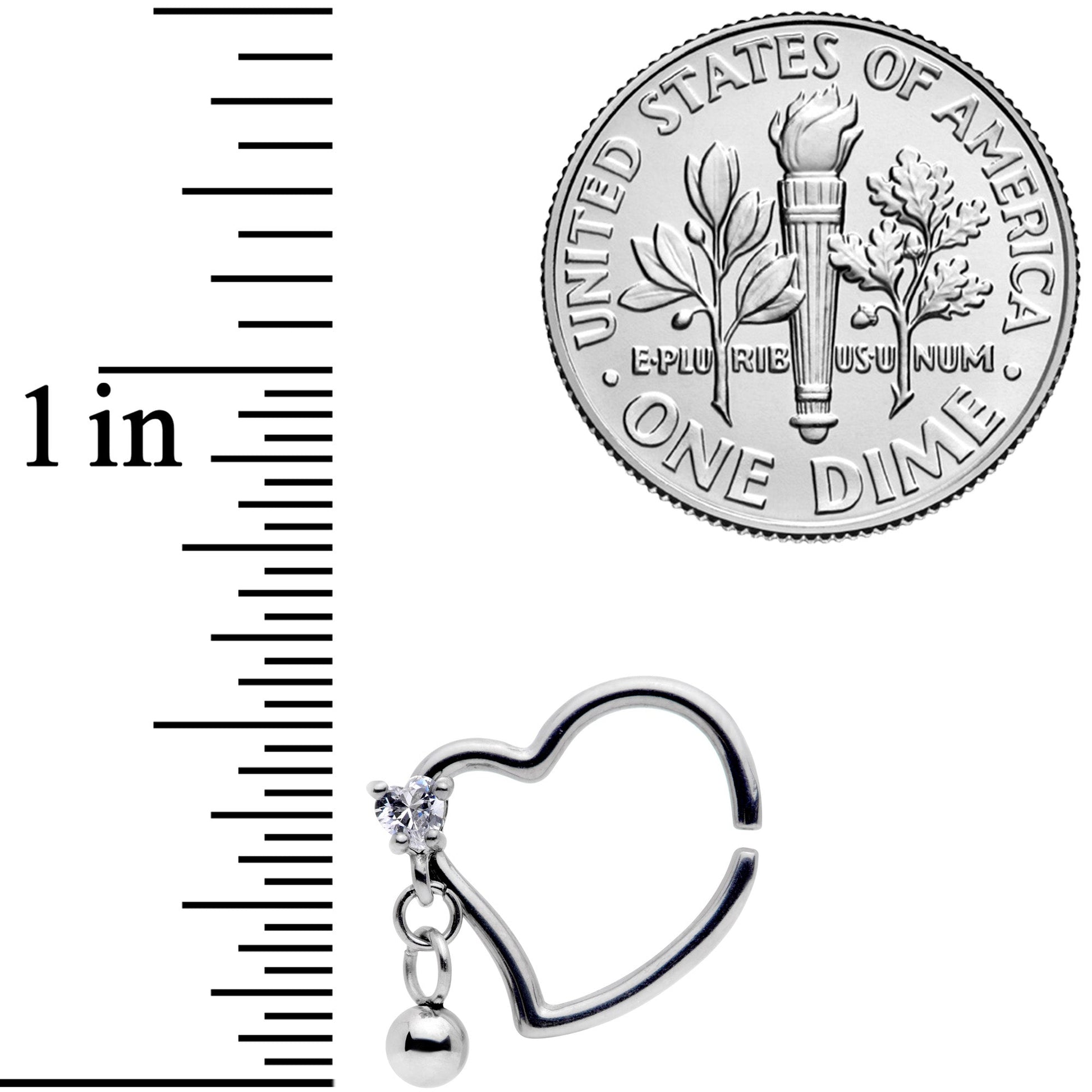 16 Gauge 3/8 Clear CZ Gem Funky Heart Right Dangle Closure Ring