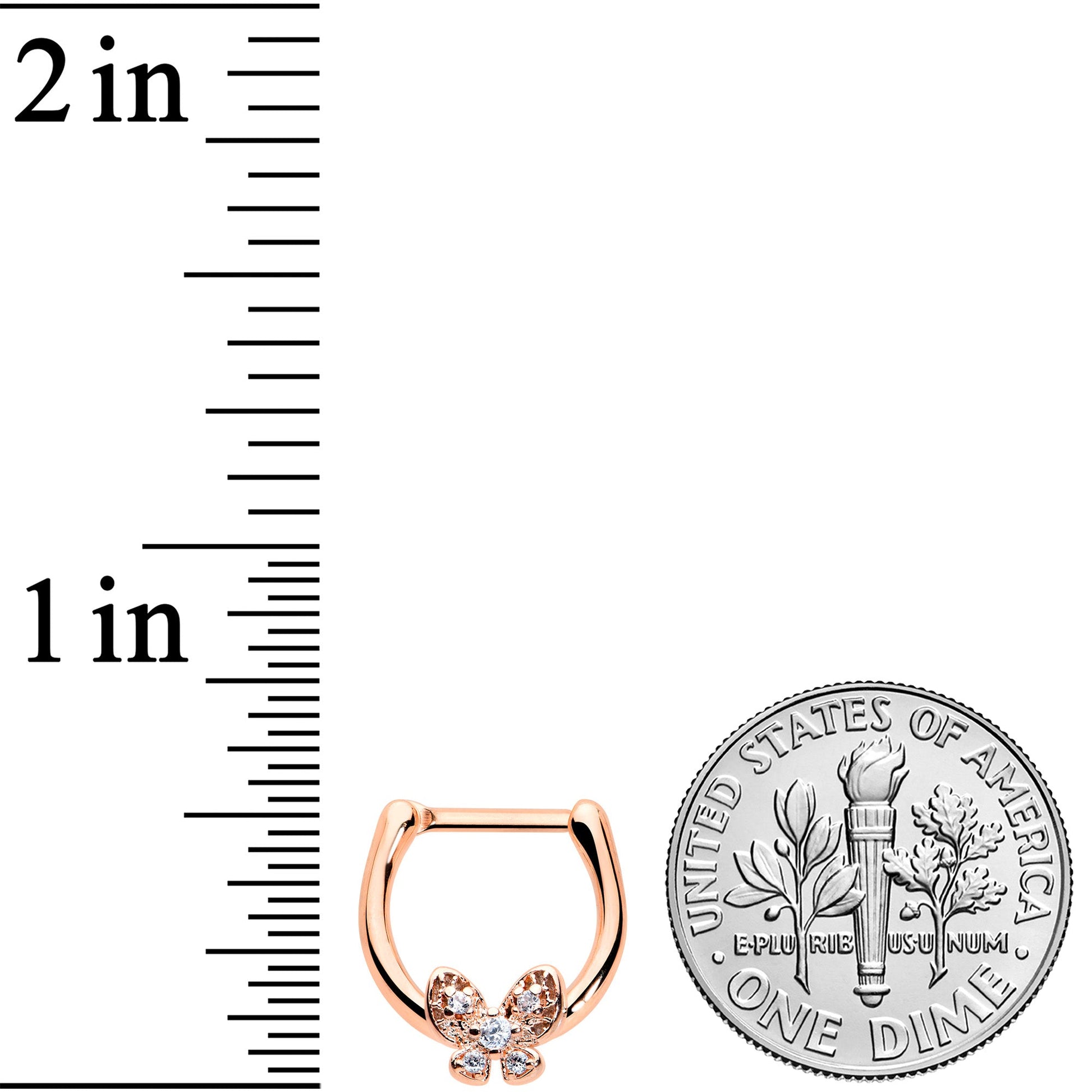16 Gauge 5/16 Clear Gem Rose Gold Tone Beauty Butterfly Cartilage Clicker