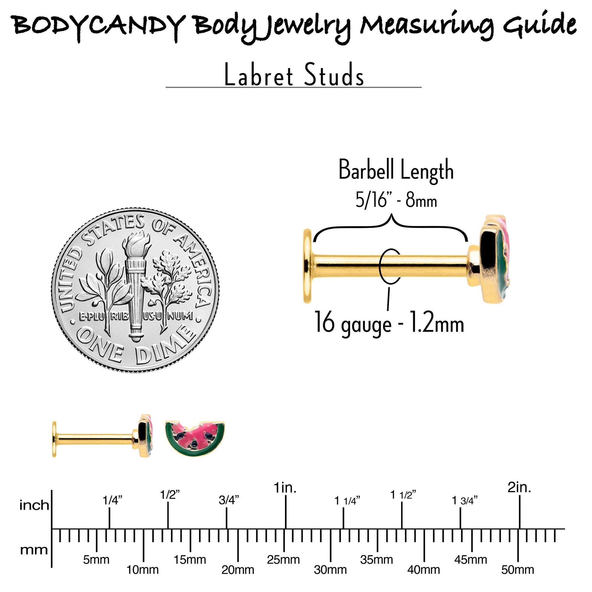16 Gauge 5/16 Gold Tone Watermelon Bite Labret Monroe Tragus