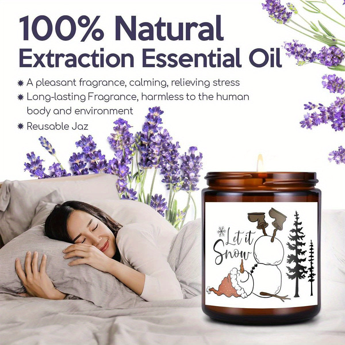 1pc Lavender Scented Candle, "Let it Snow" Festive Design, Smoke-Free, Plant Extraction, Essential Oils, Glass Jar, Perfect for Christmas, Home & Kitchen Decor, Ideal for Coworkers, Friends, Family, White Elephant Gift
