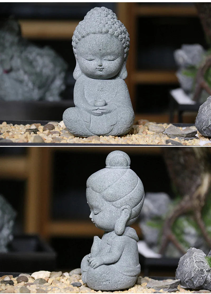 Buddha Stone Statue Little Buddhist Monks Tibetan Buddhism Figurines Zen Garden Ornament Meditation Home Aquarium Decoration