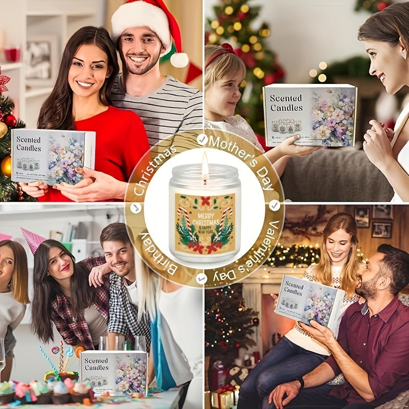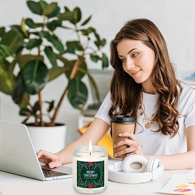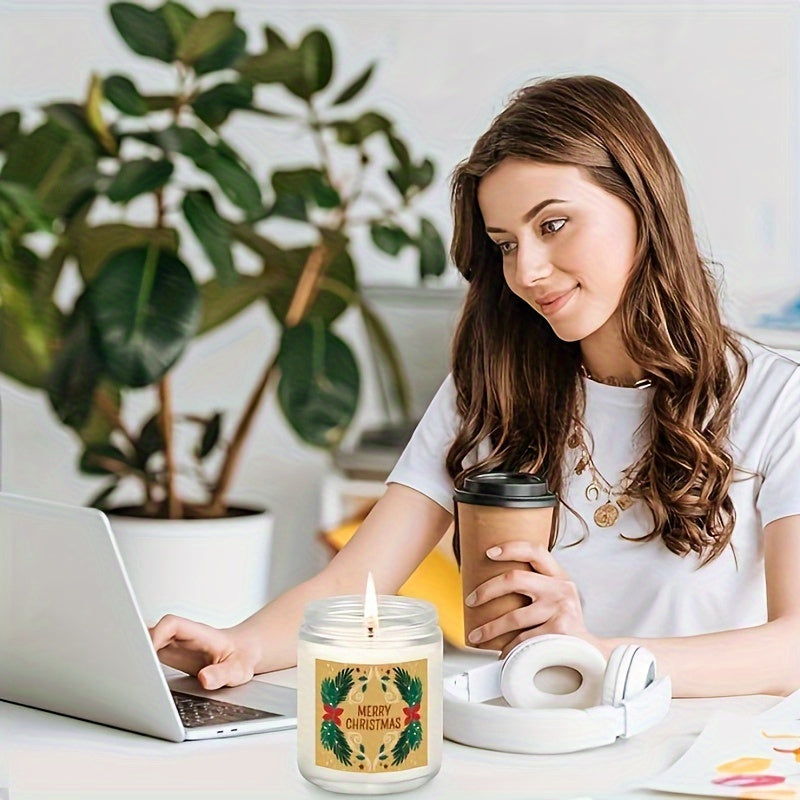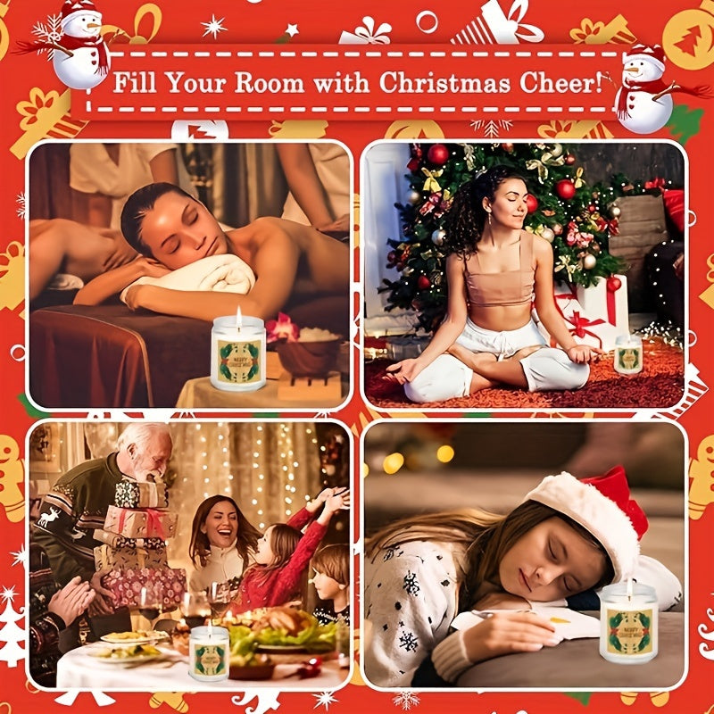 Christmas Themed Scented Candle in Glass Jar, Lavender Soy-Beeswax Blend, 3.5 oz, Hand-Poured with Single Wick, Ideal for Holiday Decor, Christmas Gifting, Festive Ambience & Home Aromatherapy - Comes with Bow Embellishment