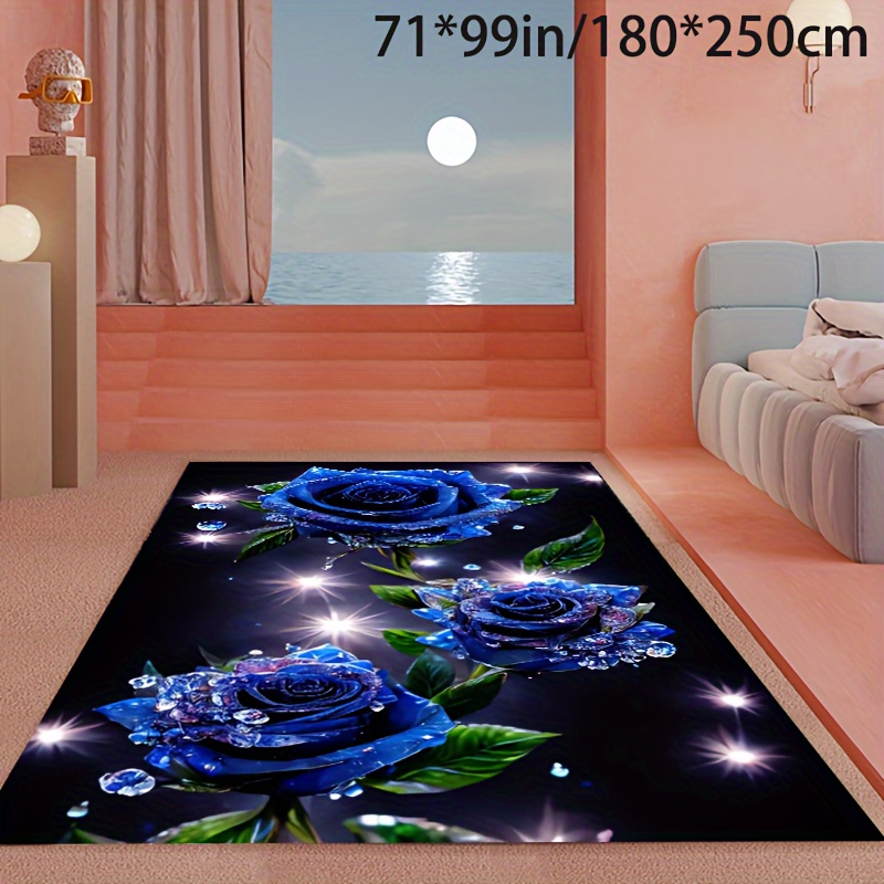 Crystal Velvet Romantic Valentine's Day Blue Fairy Rose Earth Blanket Area Rug Hotel Living Room Bedroom Soft Carpet Machine Washable Non-slip Backing Office Entryway Indoor Decorative Carpet Floor Mat For Hotel/Restaurant/Of