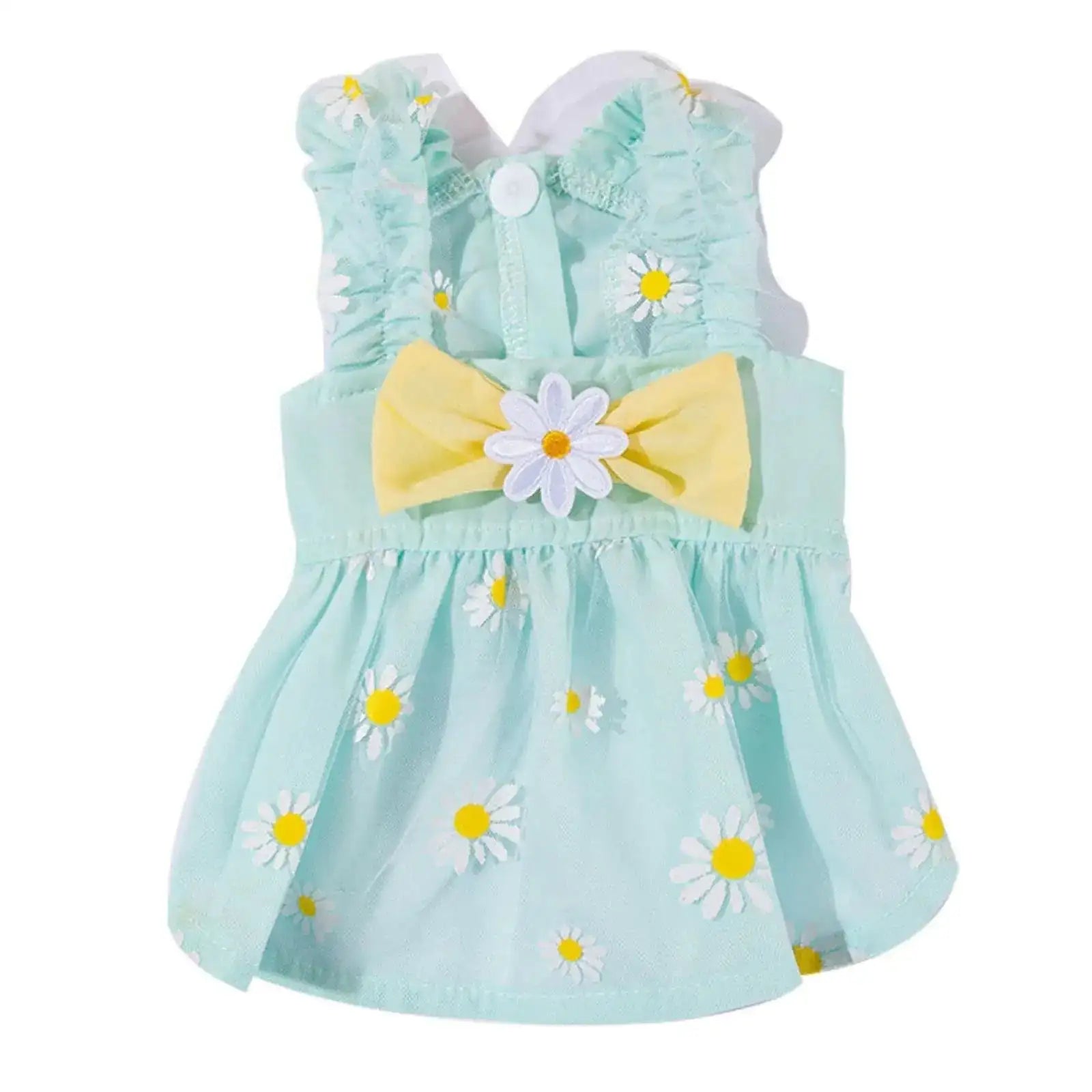 [Unique Design: The pretty sunflower print and yellow bow are sure to make your furry friend the center of attention. Give your dog a touch of elegance with this beautiful pet dress. High Material: Dog dress for small dogs made of high-quality material matches white flower . And the summer dress turns your pet into a charming & lovely girl. This fabric is known for its breathability and durability. "Size Information: Dog skirt come in different sizes so you should measure your dogs chest neck and back length to get the right size. Its essential to choose a dress that fits your dog comfortably not too loose or too tight." "Occasion: Pet dress for small dogs girl can be applied both indoors and outdoor activities all year long great dogs outfits for special celebrations and daily wearing like party wedding travel vacation can provide your dog with an eye-catching and cool appearance \u200beasy to make your dog stand out." Care:Dog summer outfits need to be washed regularly to keep them clean and fresh. Always check the care label to ensure you wash the dress in the right way.]