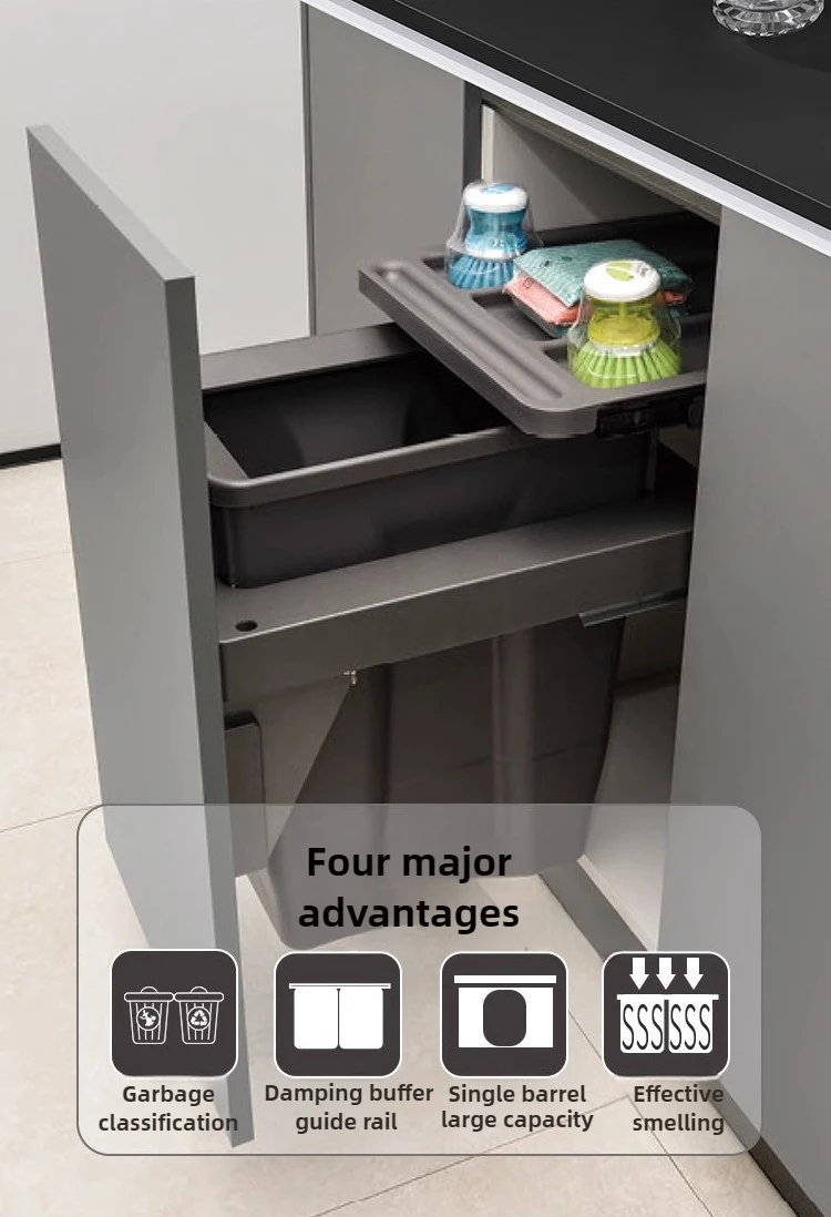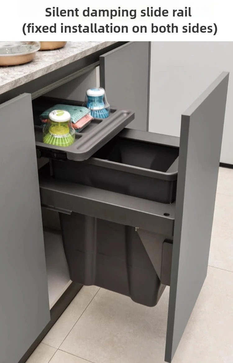 Large Capacity Waste Bins Food Waste Trash Can Kitchen Recycle Dustbin Built-in Cleaning Litter Bins Garbage Disposal Tools