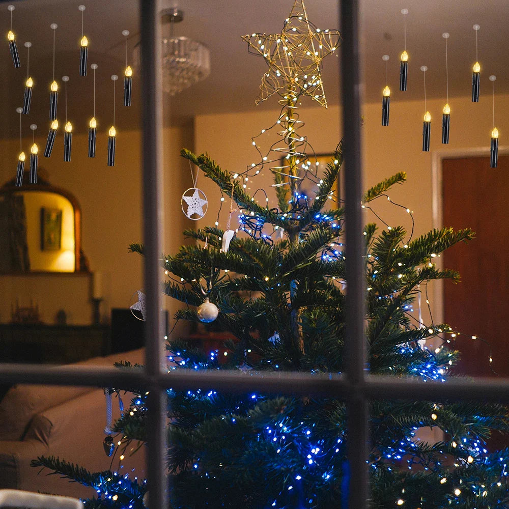 LED Floating Candle for Home Decoration, Flickering Flame, Timing Remote, Battery Operated, Halloween, Christmas,Black Candle
