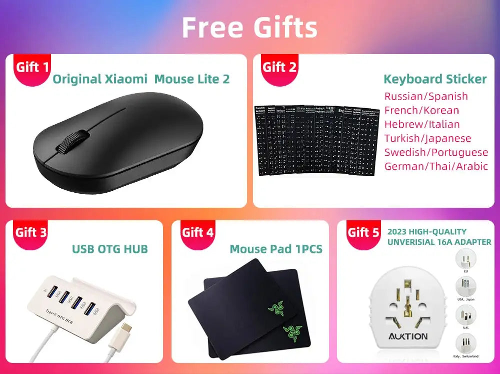 Free Gifts(Mini HUB + Mi 2Gen Wireless Mouse + Mouse Pad + Keyboard Sticker)