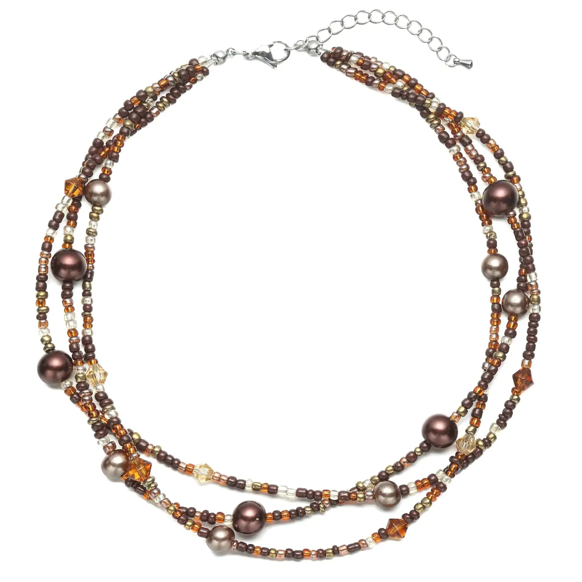 S.J JEWELRY Multi Strand Beaded Necklaces for Women Colorful Beaded Necklace Boho Necklaces for Women Summer Beach Necklace Pearl Choker Layered Necklace 3CK-Pearl-Brown