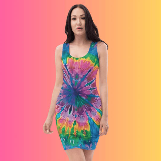 Vibrant Groovy Tie-Dye Bodycon Dress for Rave Lovers