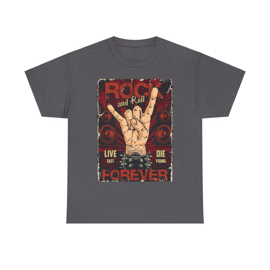 Rock and Roll Forever Hand Sign Unisex Heavy Cotton Tee