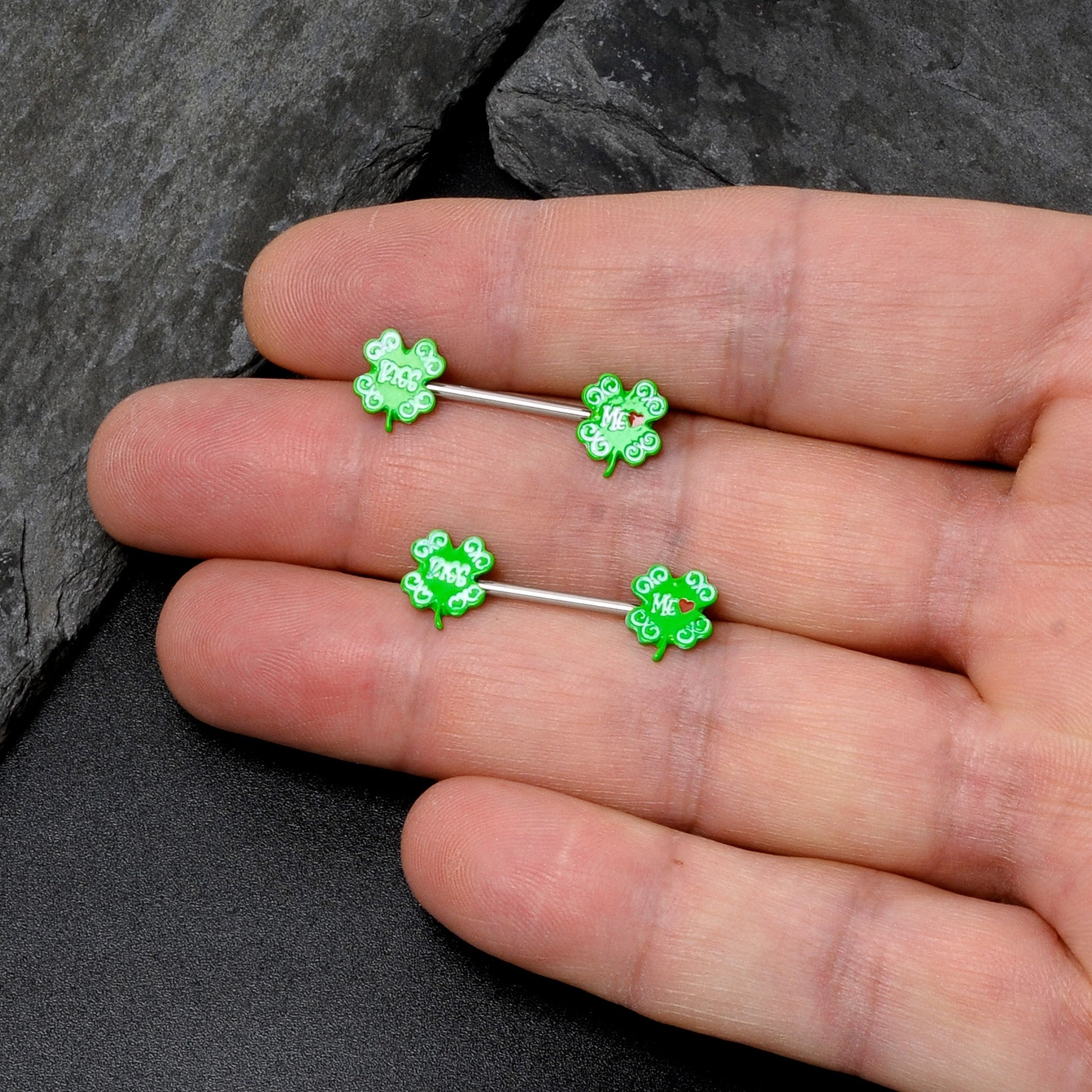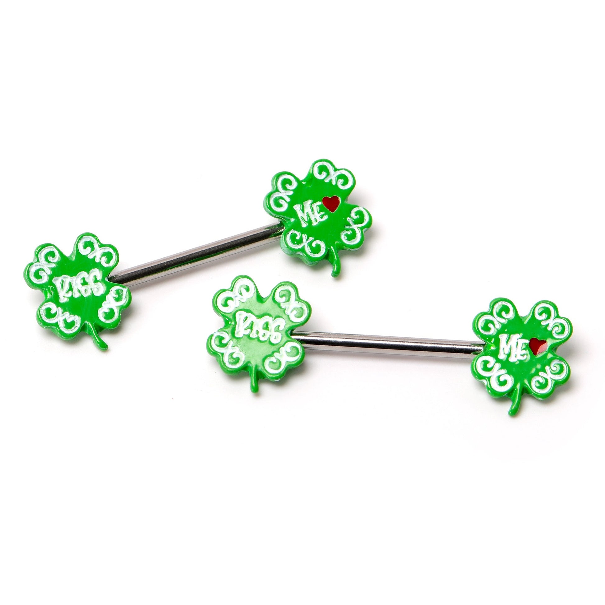 14G 9/16 Kiss Me Shamrock St Patricks Barbell Nipple Ring Set
