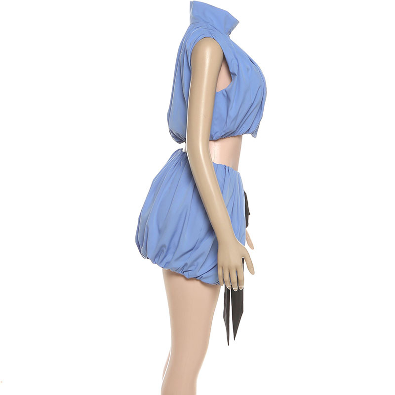 Fall Women Clothing High Collar Contrast Color Sexy Cropped Top Sexy Skirt Two Piece Sets