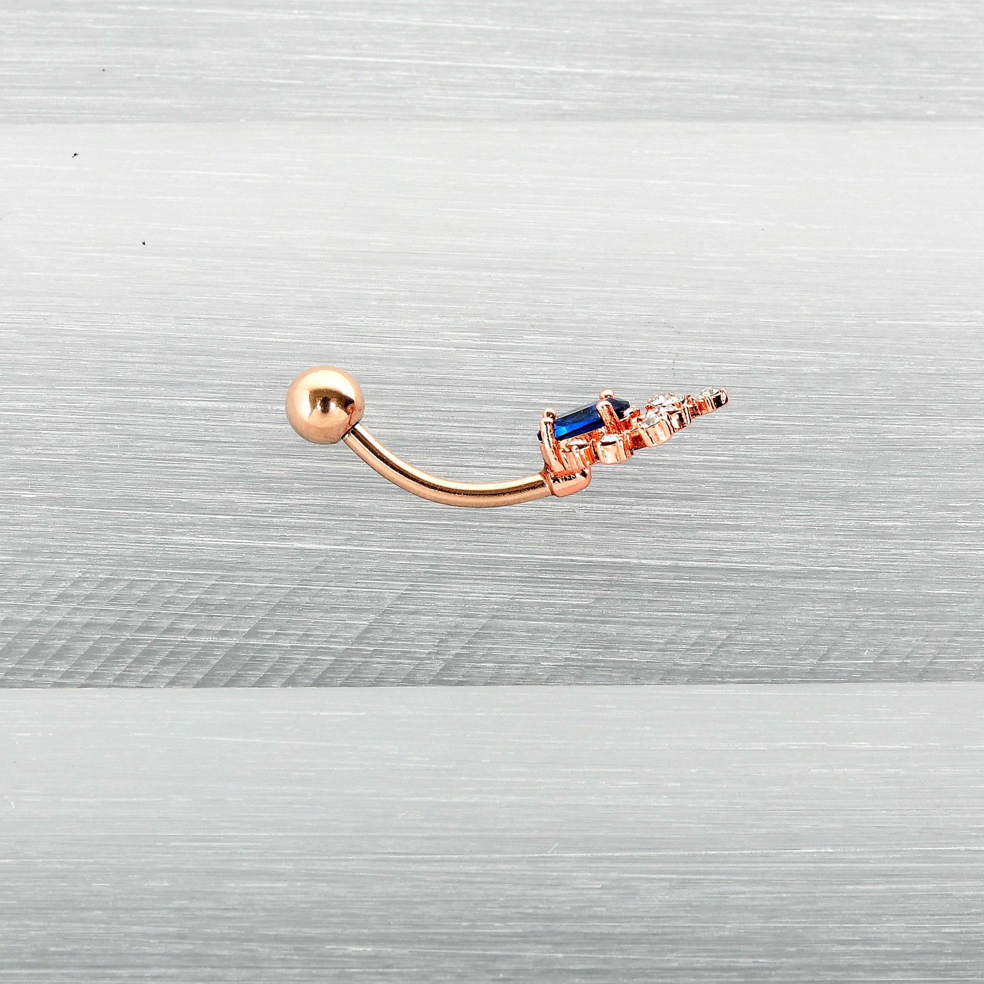 Clear Blue Gem Rose Gold Tone Glamour Flare Belly Ring
