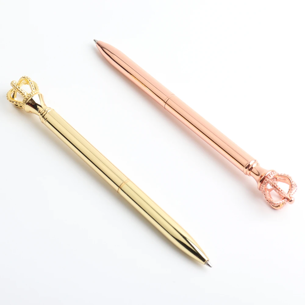 GENKKY Pen Exquisite Shining Crown Ballpoint Pen Crystal Diamond Writing Tool Office Supplies Student Stationer Silver RoseGold