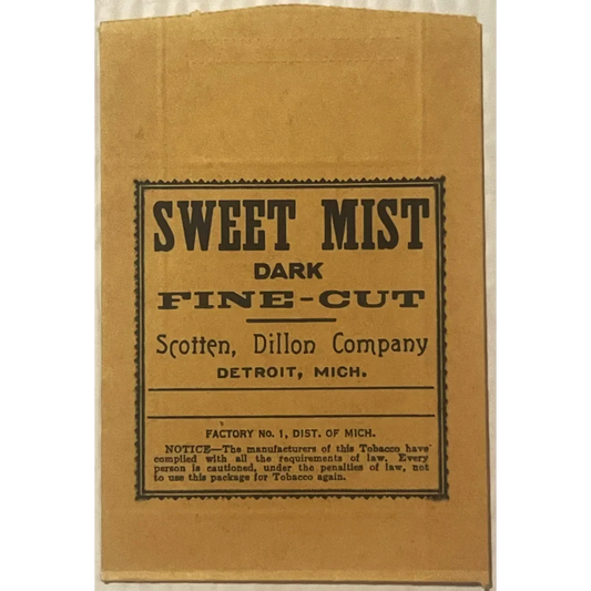 Rare Antique Sweet Mist Dark Tobacco Bag from 1930s Detroit