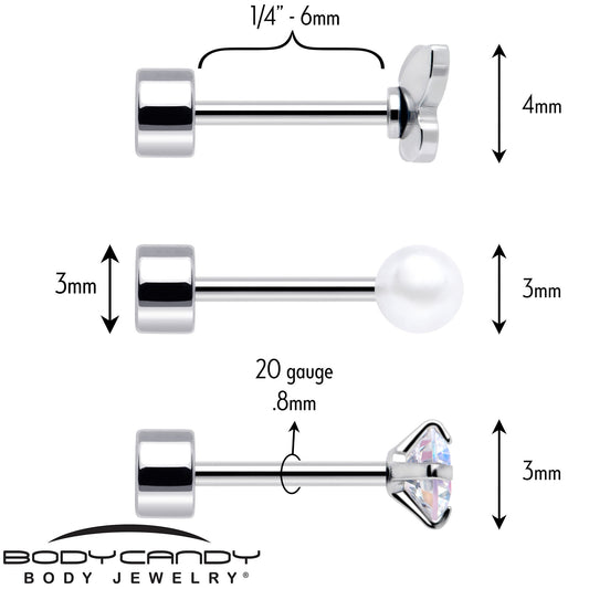 20G Aurora Gem White Orb Butterfly Flatback Earring Set of 6