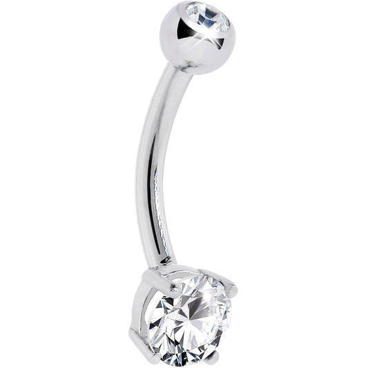 16G Solid 14K White Gold Round Cubic Zirconia Belly Ring