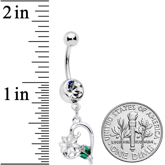 Clear Gem Sweet Flower Heart Dangle Belly Ring