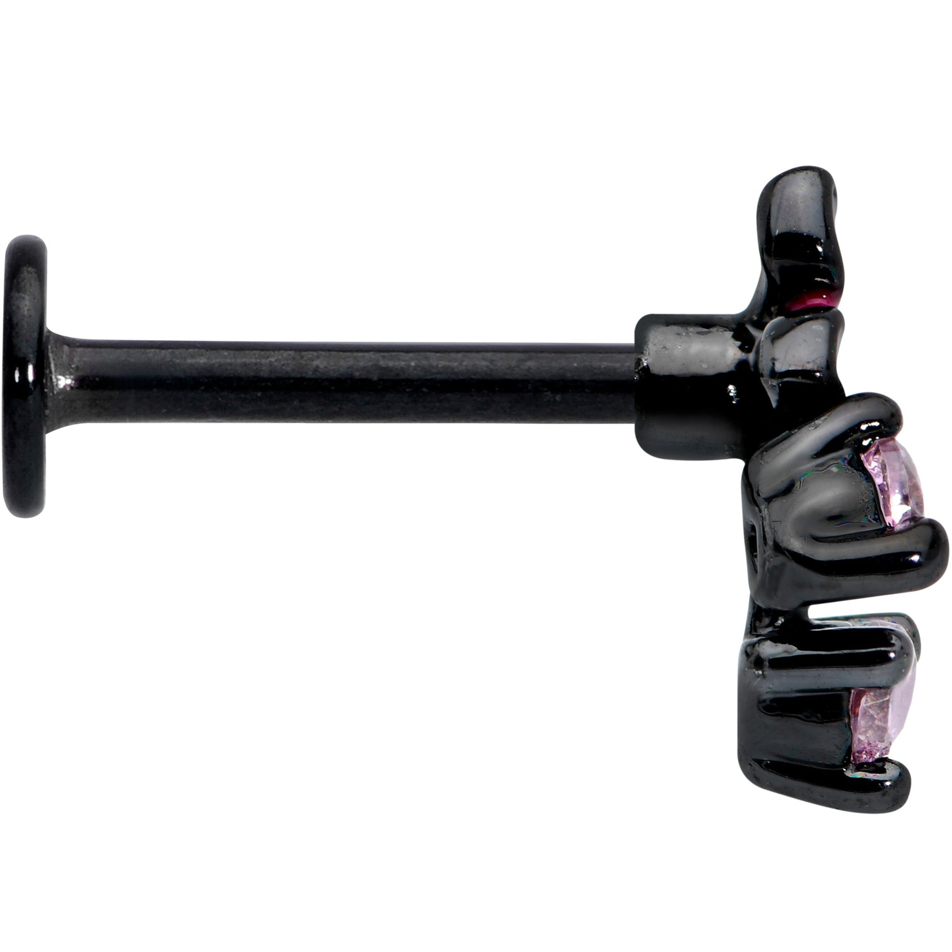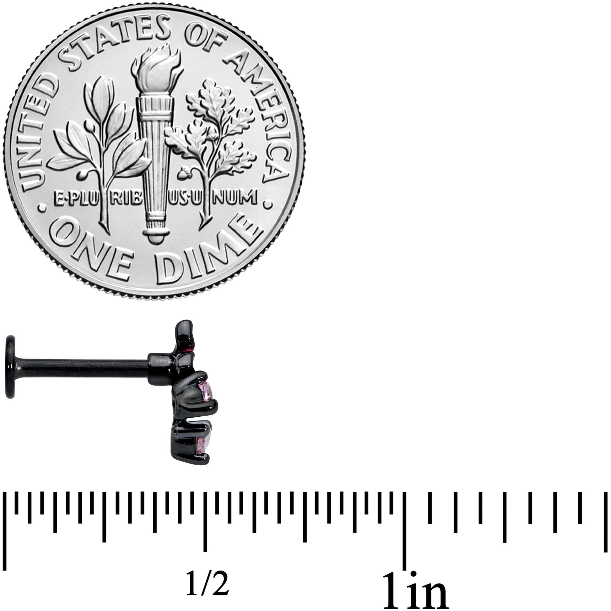 16 Gauge 5/16 Pink Gem Black Fanciful Flower Labret Monroe Tragus