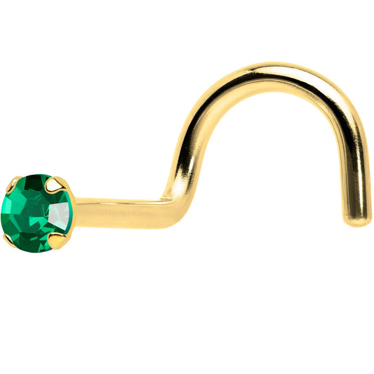 Solid 14k Yellow Gold 2mm Emerald Cubic Zirconia Solitaire Nose Ring