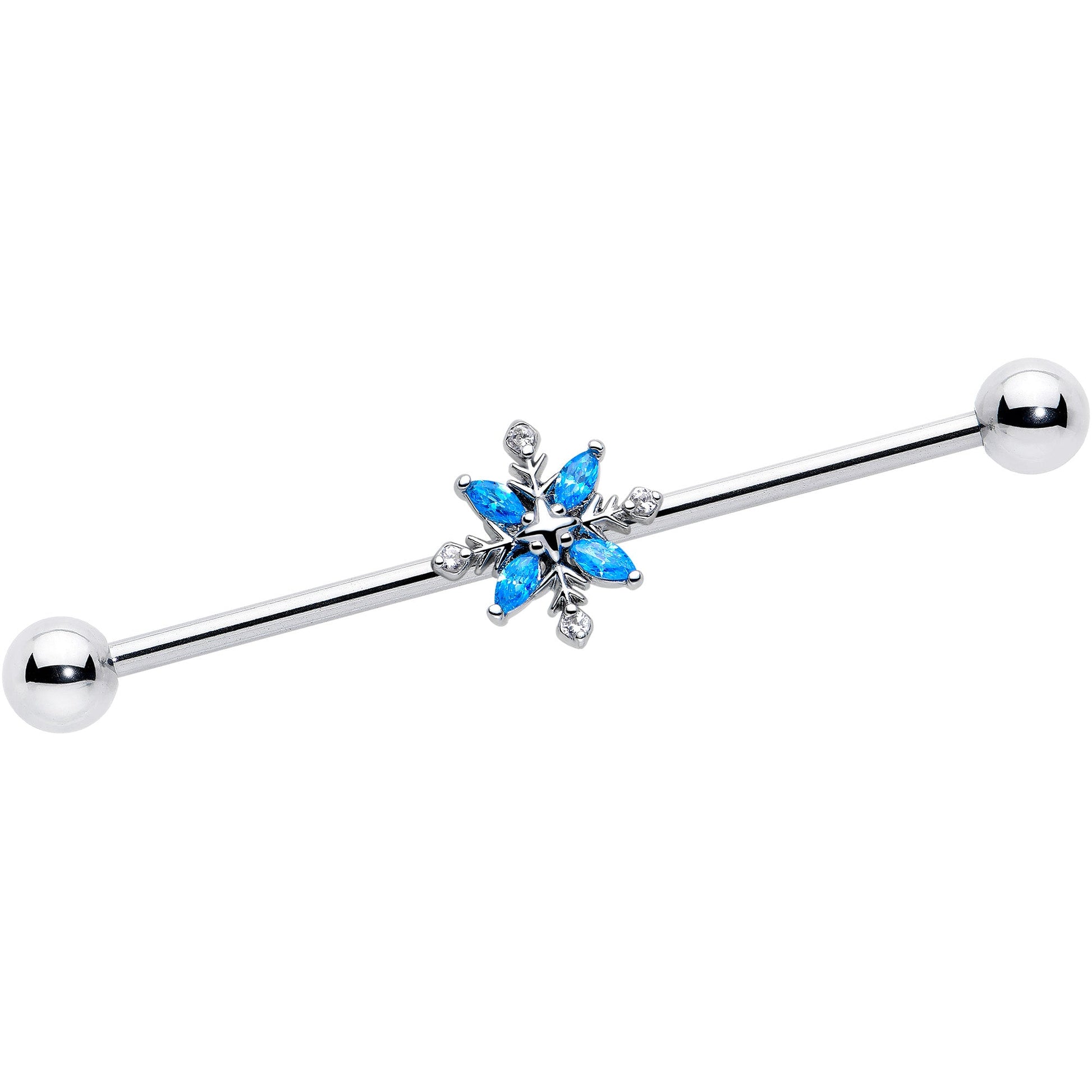 14G Blue CZ Gem Classic Flower Industrial Barbell 38mm