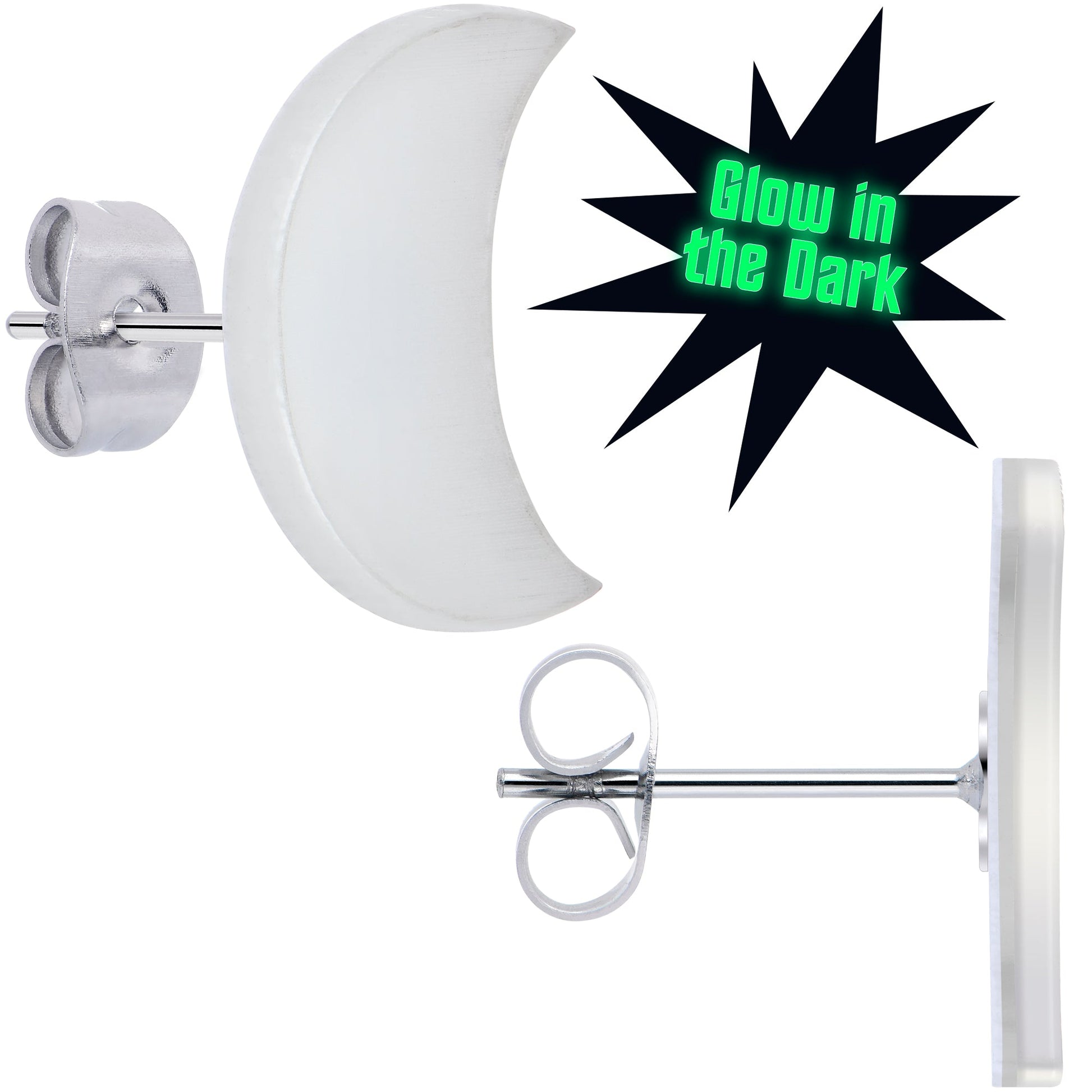 Crescent Moon Glow in the Dark Stud Earrings by Onyx O