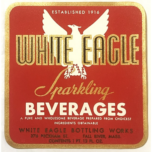 Rare 1930s Gold Embossed White Eagle Beverage Label from Fall River
