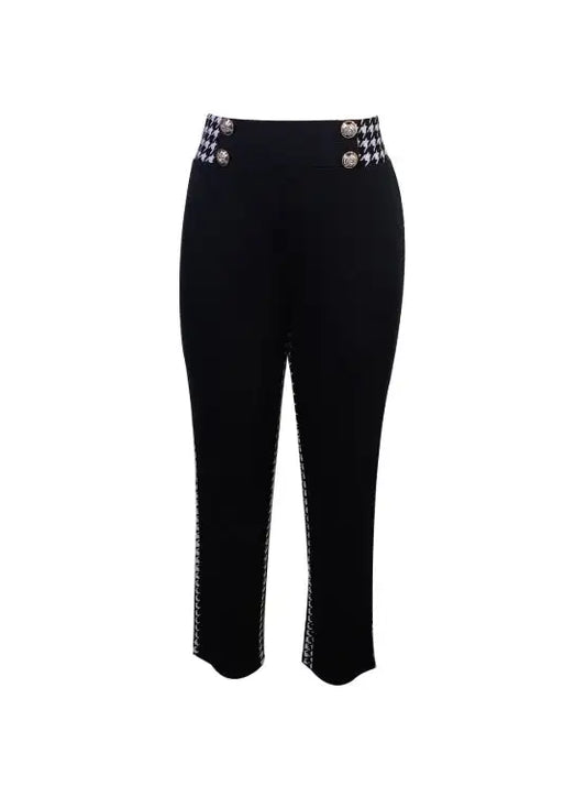 Ladies' Solid Color Herringbone Button Fashionable Slimming Casual Pants