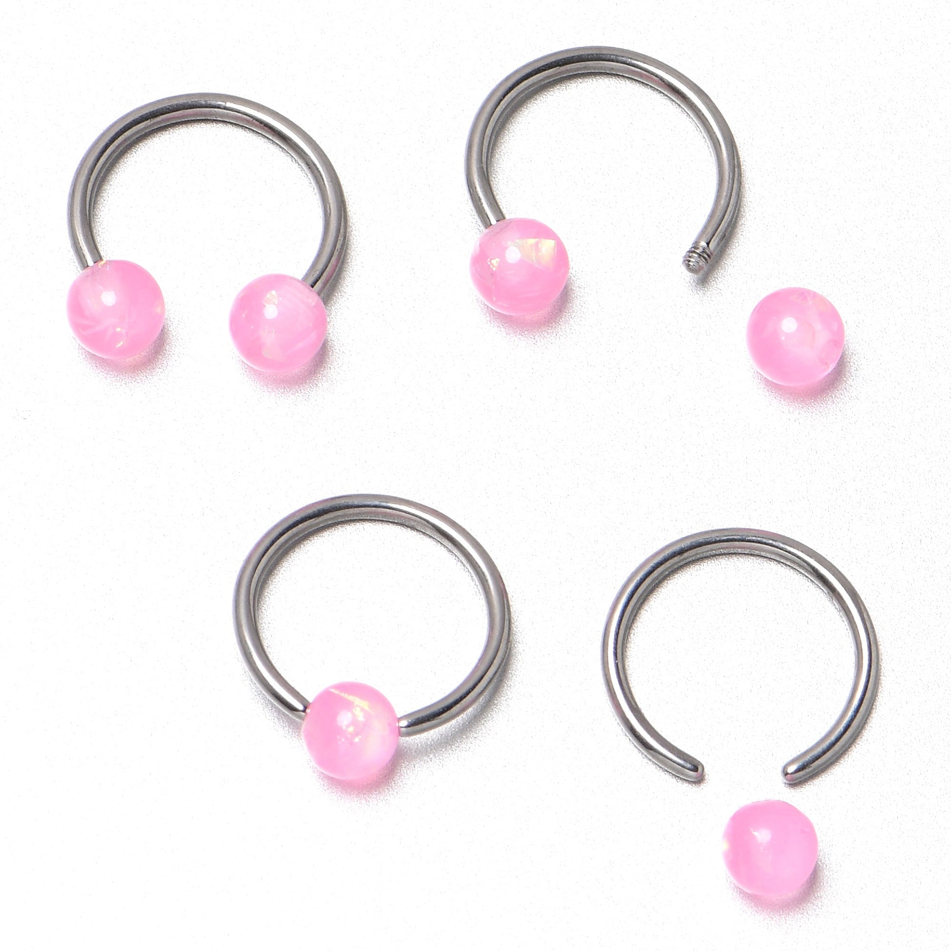 16 Gauge 3/8 Pink Faux Opal Horseshoe BCR Captive Ring Set of 4