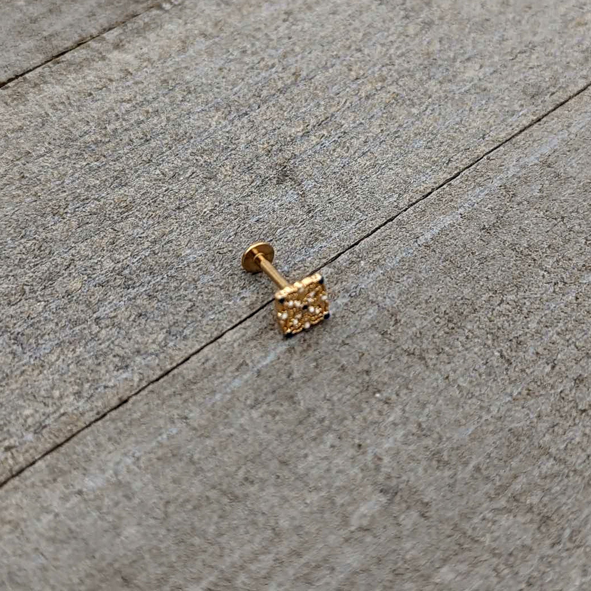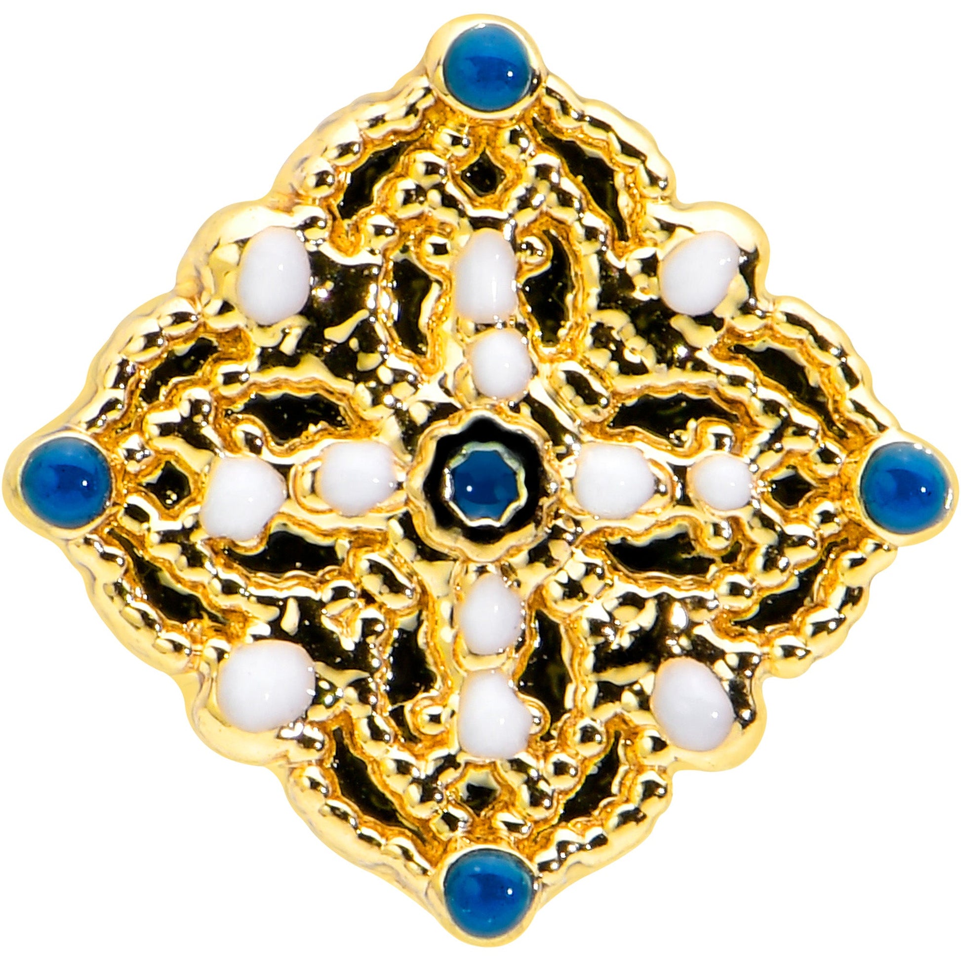 16G 5/16 Blue Gem Gold Tone Lacy Rhombus Labret Monroe Tragus
