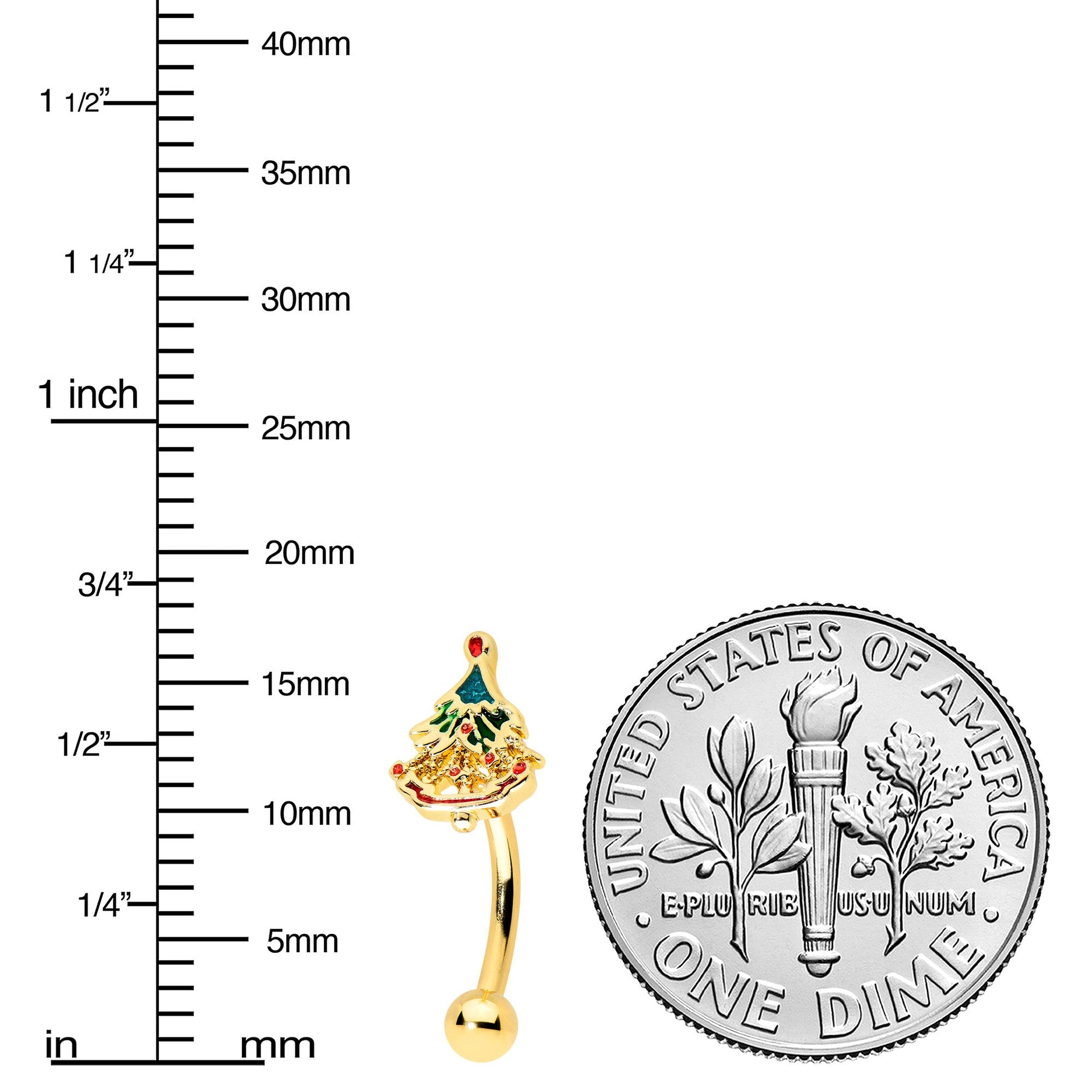16 Gauge 5/16 Red Gem Gold Tone Deco Holiday Tree Curved Eyebrow Ring