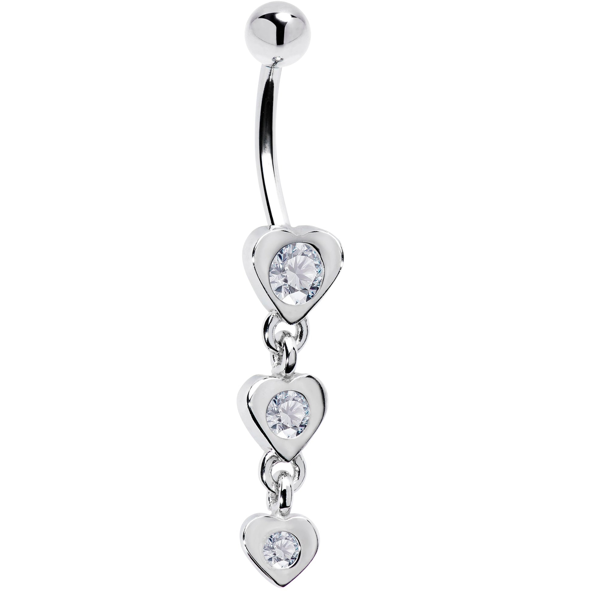 A remarkable solid gold heart belly ring with brilliant shine. Sparkling cubic zirconia belly ring. High polish 14 karat gold Body Jewelry.