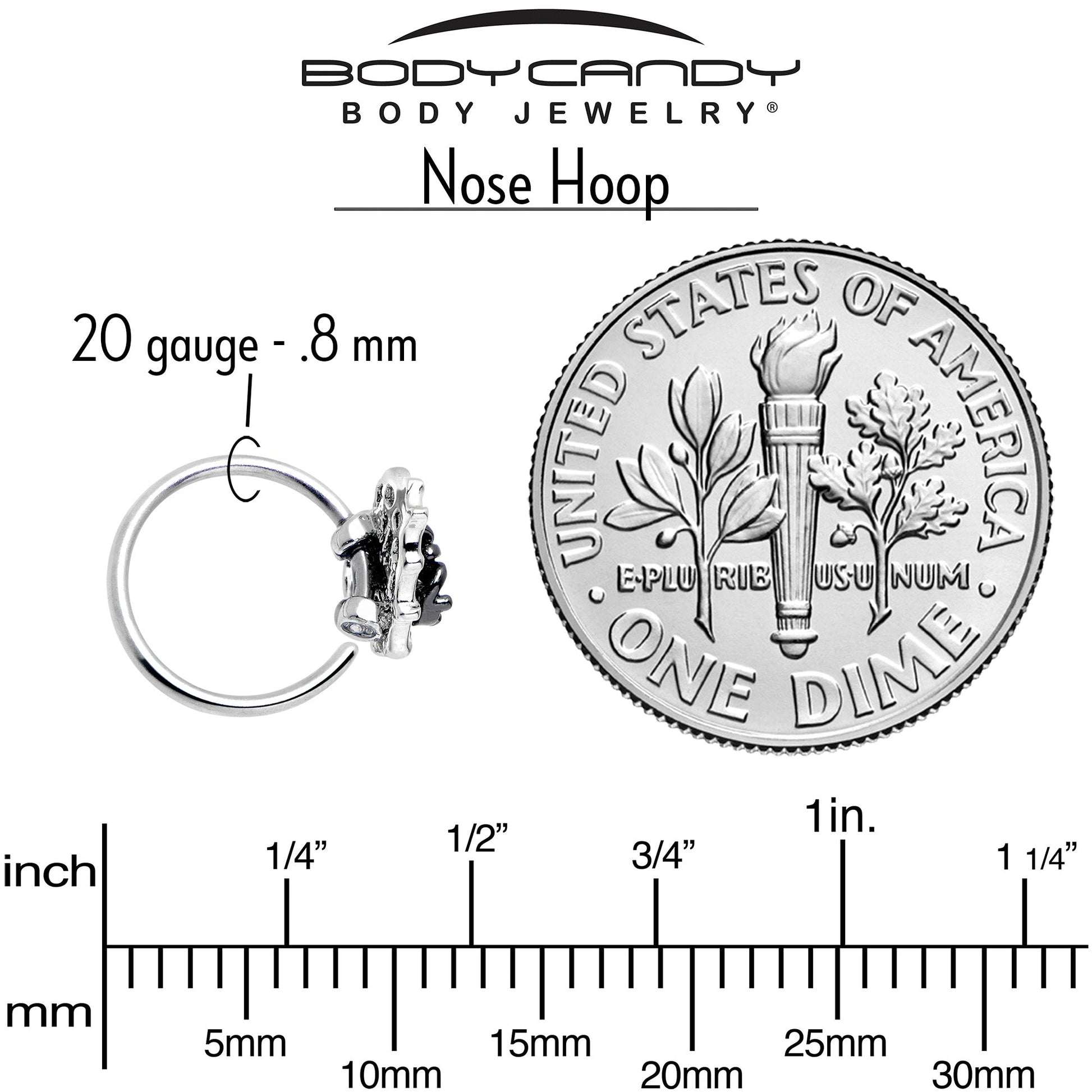 20 Gauge 5/16 Clear CZ Gem Heart of Spider Nose Hoop