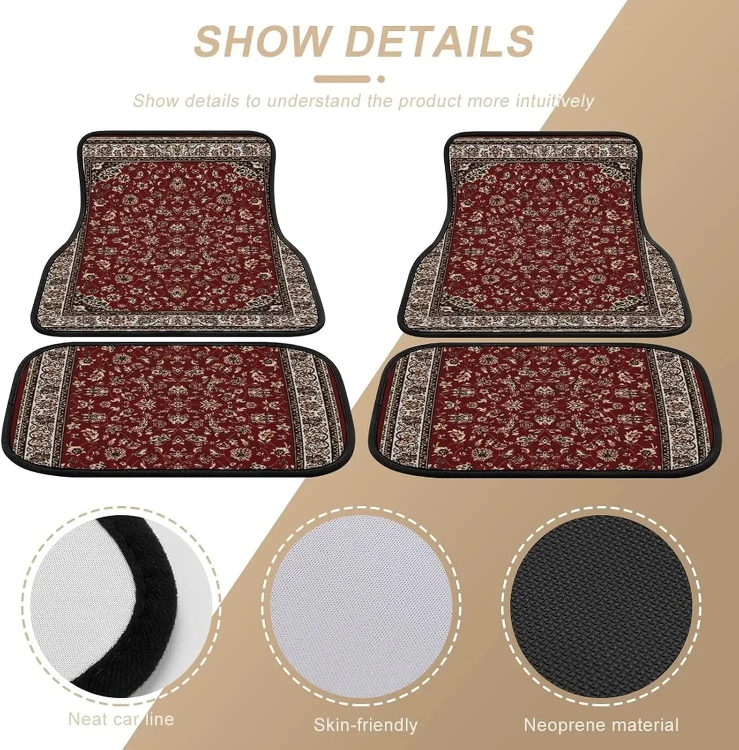 Rust Red Paisley Rug 4 Pieces Car Floor Mats Car Carpets Full Sets Universal Fit for SUV, Vans, Sedans, Trucks All Weather