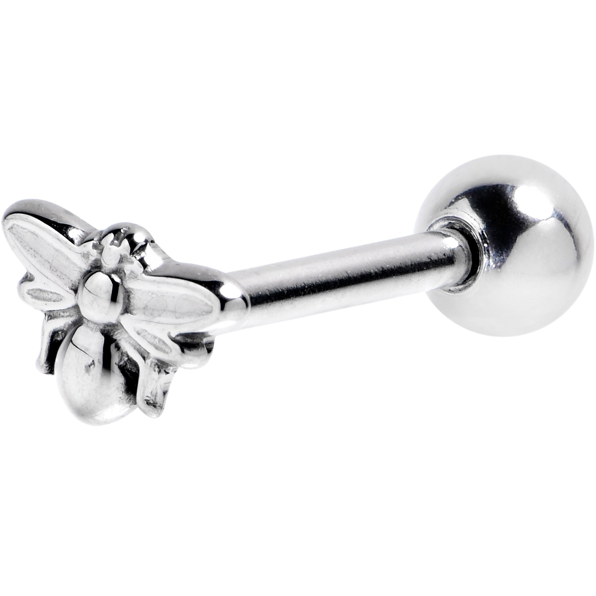 This 14 gauge tongue jewelry is sure to give you one honey of a new look. It's made with a 5/8 inch 316L surgical grade stainless steel straight barbell with a 6mm bottom ball end. The top end features a bee charm, with the body featuring understated detailing. It also features stylized wings and legs for a classic and elegant appearance. This unconventional insect tongue piercing ring is sure going to make you look super sweet!Specifications